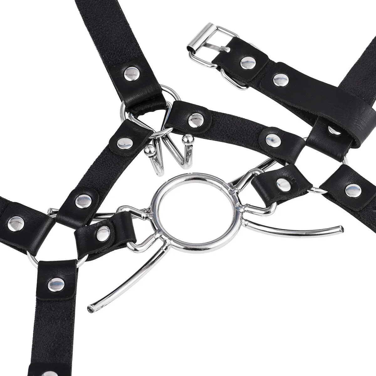 Металлическое уплотнительное кольцо кляп Паук открытый рот штекер с носовым крючком, кожаная голова бондаж ремень ведомая оральная фиксация БДСМ-игра интимные игрушки для пар