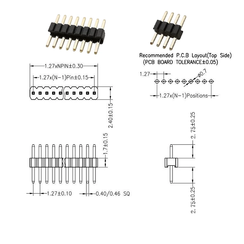 20 шт. шаг 1,27 мм Однорядный контактный штекер заголовок печатная плата Pinheader Connector 2P 3P 4P 5P 6P 8P 10P 12P 15P 20P 40P 50Pin