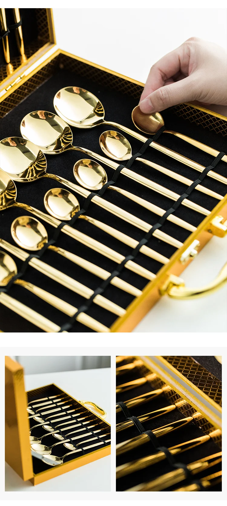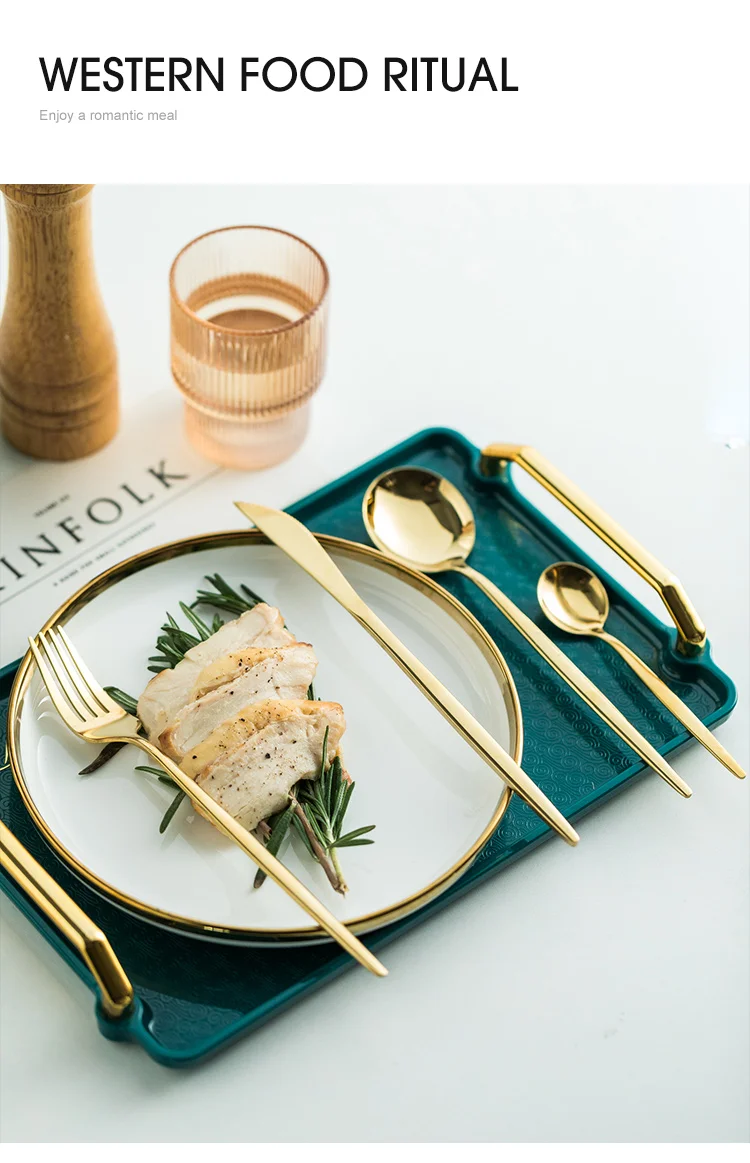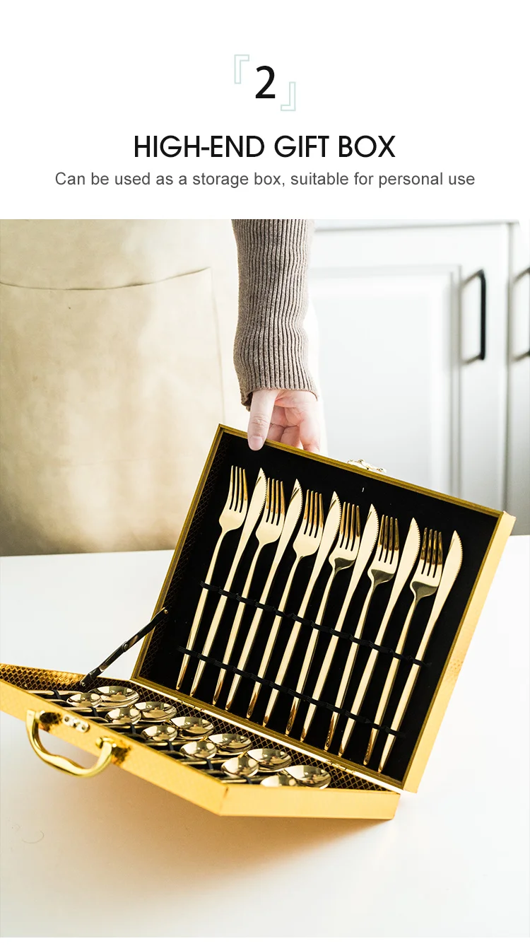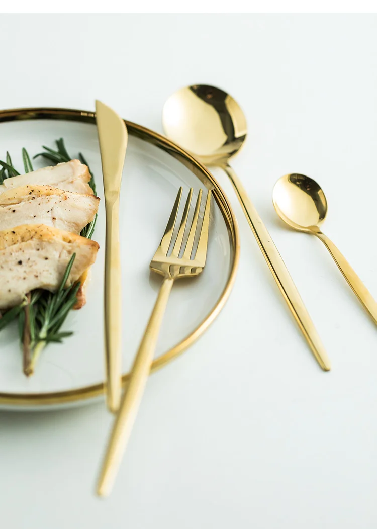 24Pcs/Set Gold Dinnerware Set Stainless Steel Tableware Set Knife Fork Spoon Kitchen Flatware Set Dishwasher Safe Cutlery Set