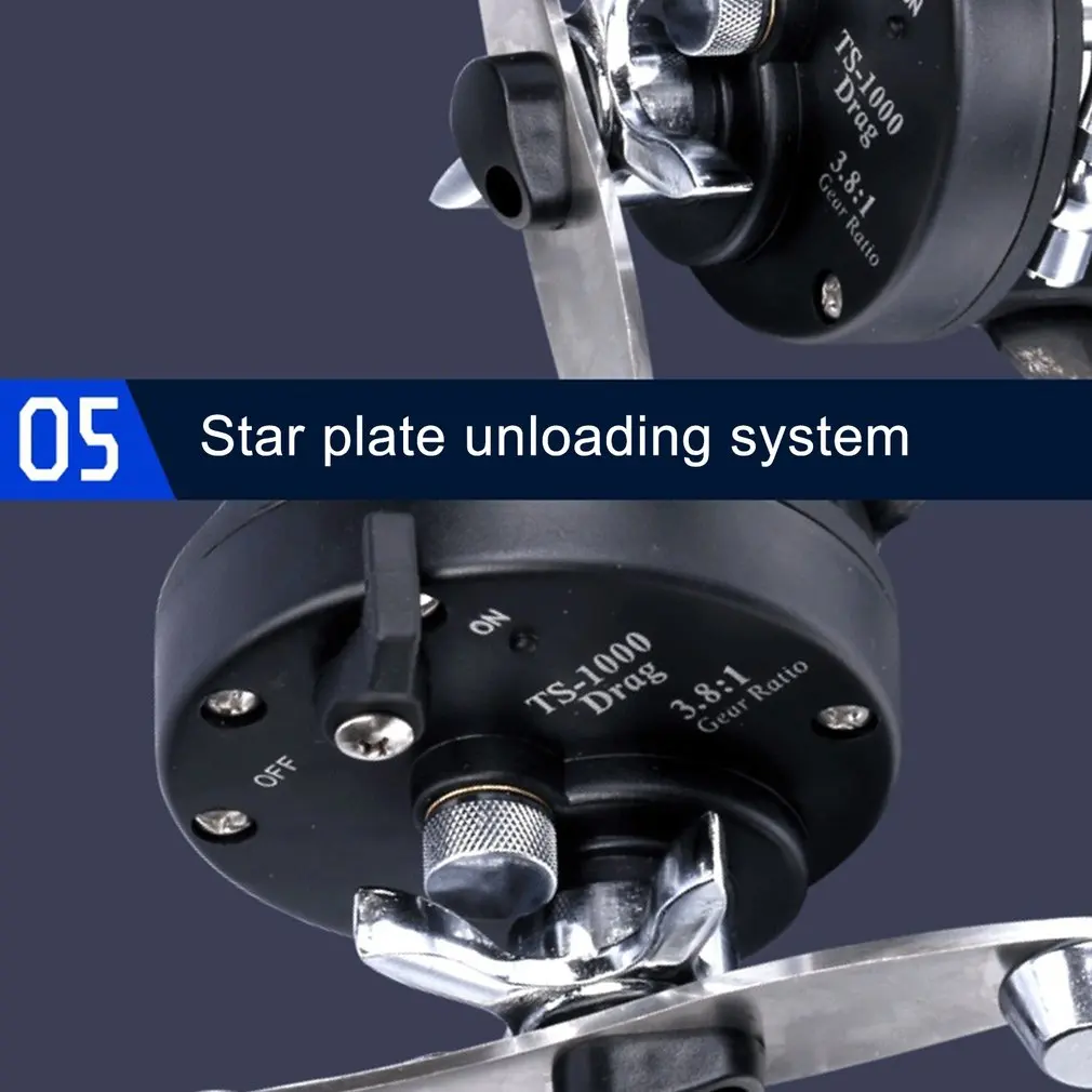 High tensile gear with five star drag system, precision and low noise. This fishing reel is ideal for fishing.
