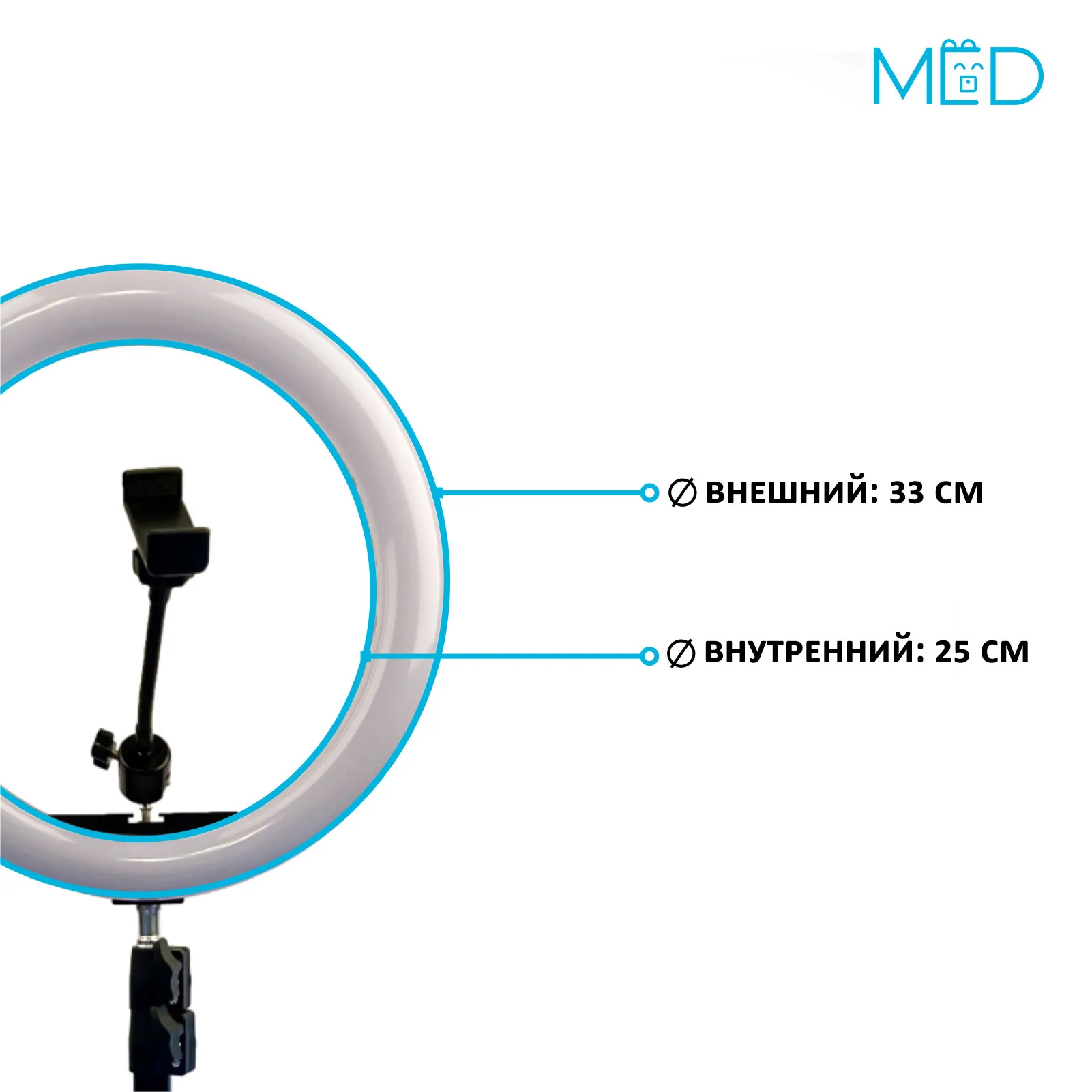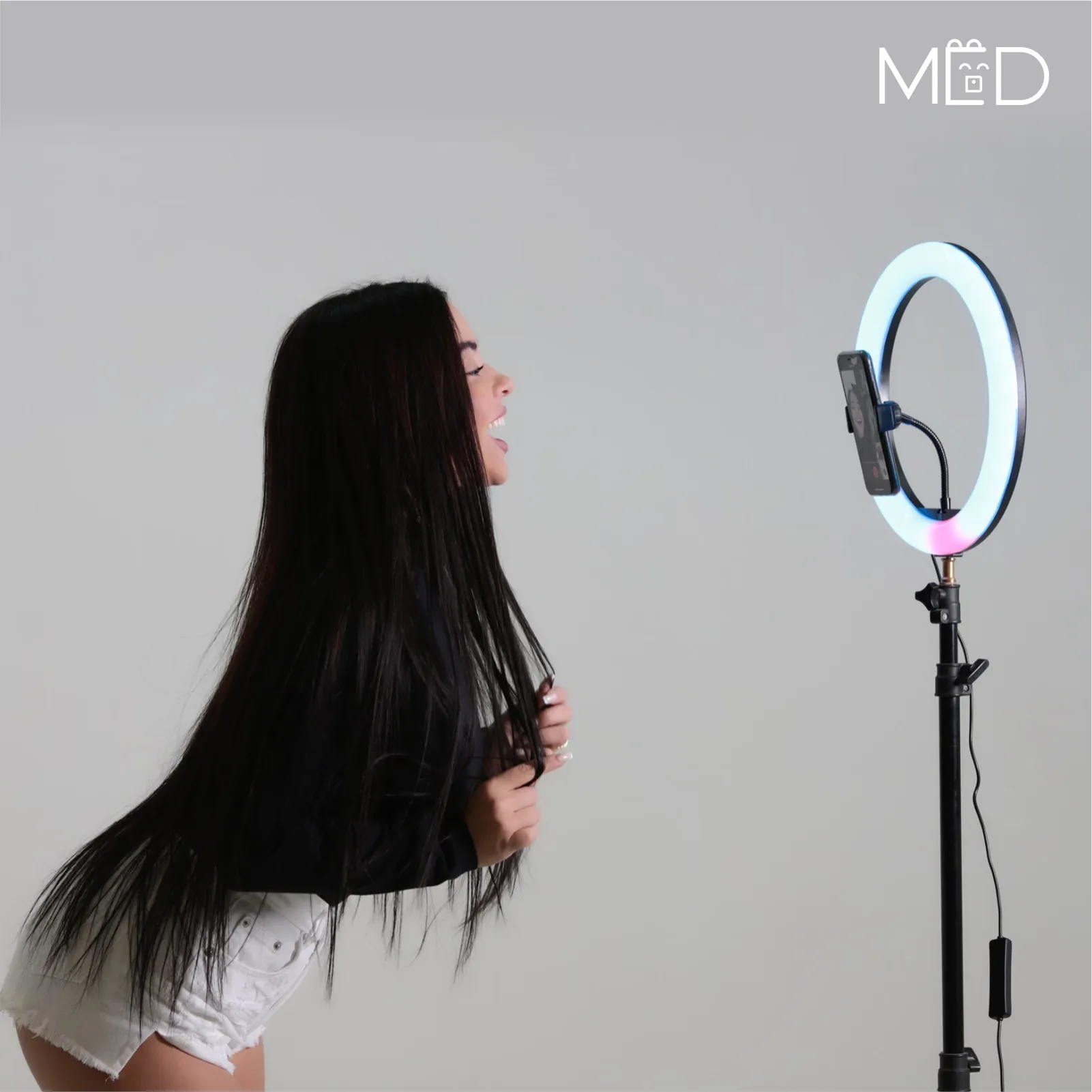Универсальная кольцевая лампа на штативе является незаменимым помощником для проведения фотосессии, потоковой передачи или записи видео.