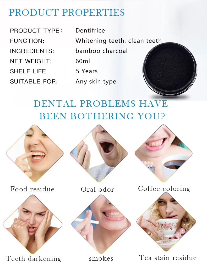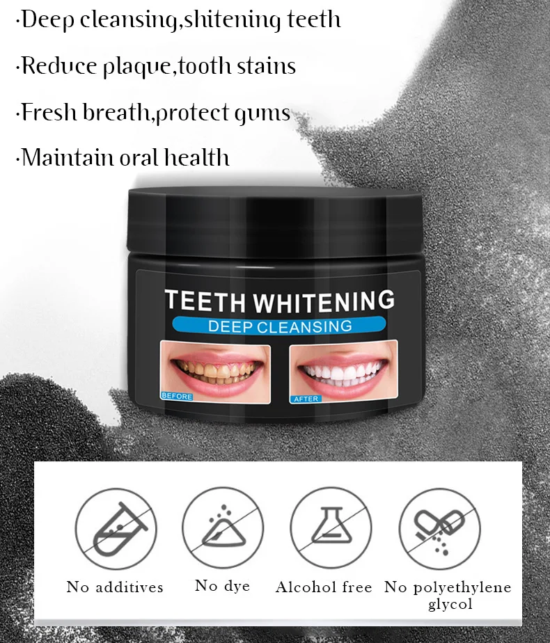 Порошок для отбеливания зубов с желтыми зубчиками, очищающий порошок для гигиены полости рта, активированный бамбуковый уголь, Кокосовая зубная паста
