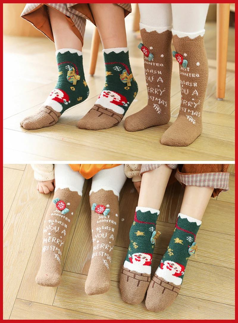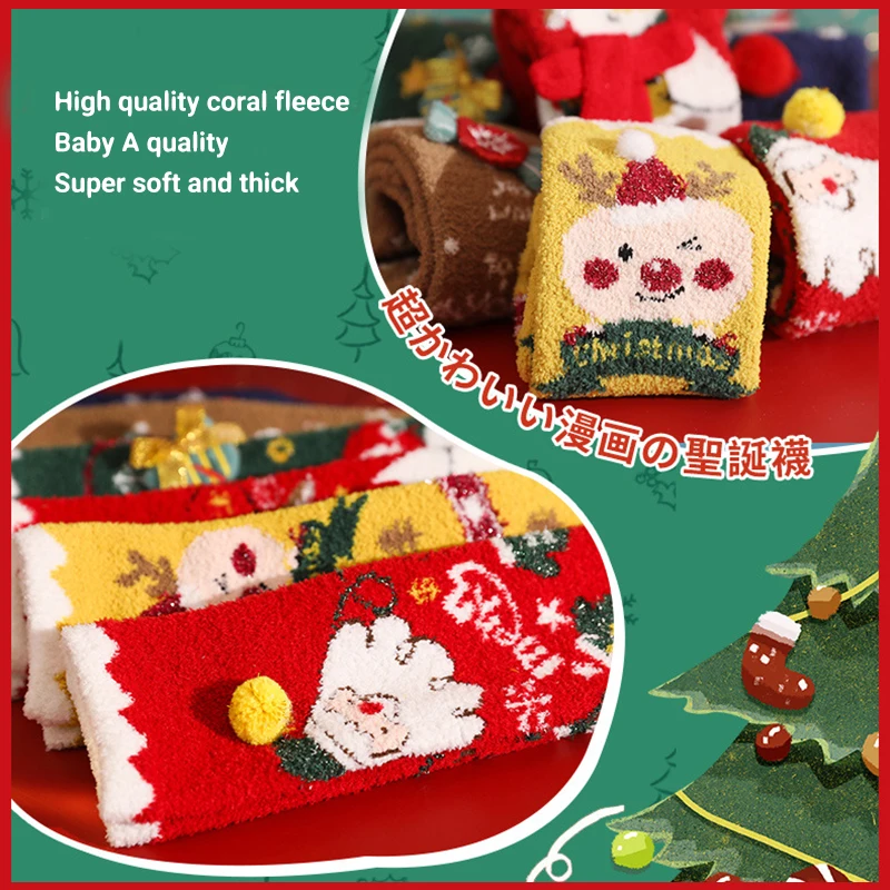 * Красивый Рождественский дизайн, эти коралловые чулки длинные и растягивающиеся, подходят для родителей и детей, взрослые и дети могут ходить в помещении.