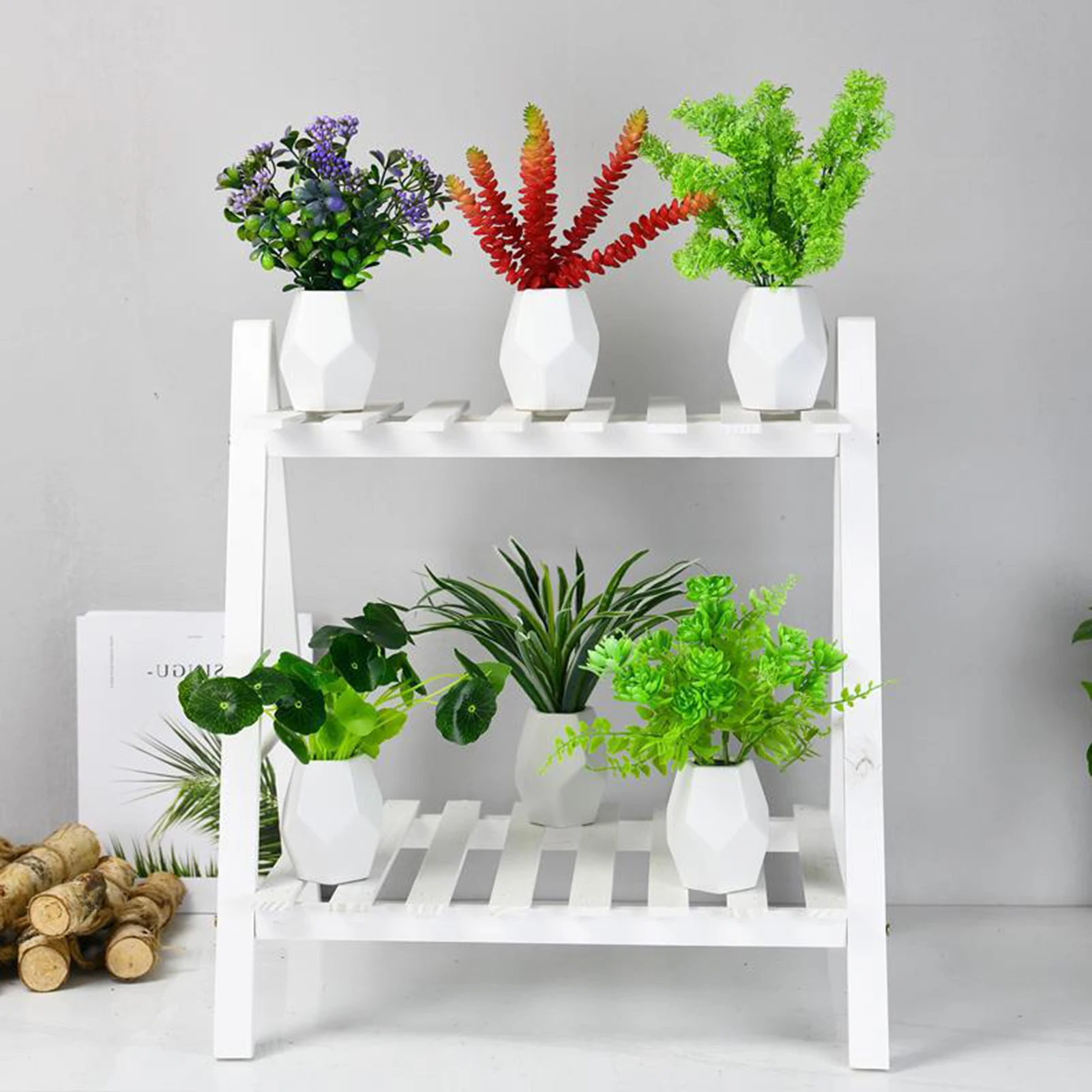 2. Двухслойная деревянная подставка для растений очень подходит для рабочего стола, балкона или гостиной, и это также отличный способ отображения сочных растений.