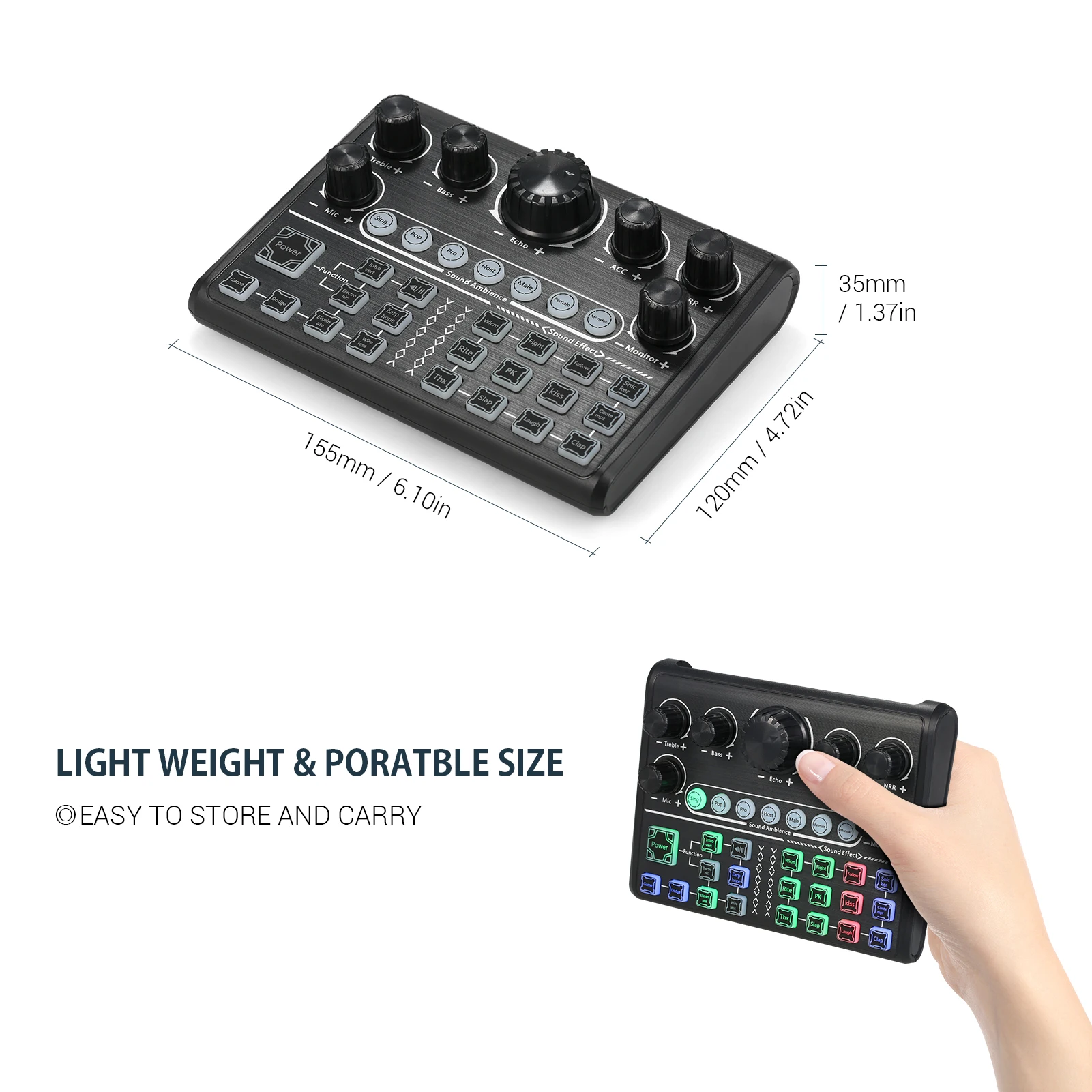 Звуковой эффект: Он имеет 12 специальных эффектов для создания желаемой атмосферы, 4 интересных режима, 3 волшебных звуковых узора (мужской/женский), очень подходит для потоковой передачи в реальном времени.