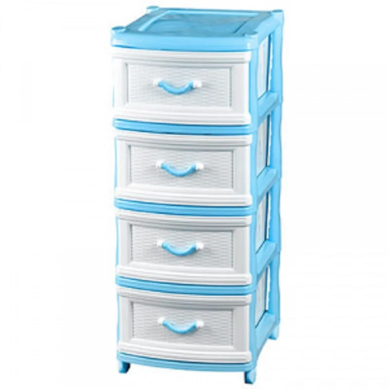 Комод из пищевого пластика с четырьмя выдвижными ящиками предназначен для хранения вещей и продуктов питания и гармонично впишется в интерьер любой комнаты. Легкий и вместительный комод поможет обеспечить порядок, избавит от разбросанных игрушек или одежды, убережет продукты от пыли и заветривания. Узор на передних панелях придаст индивидуальность и подарит настроение.