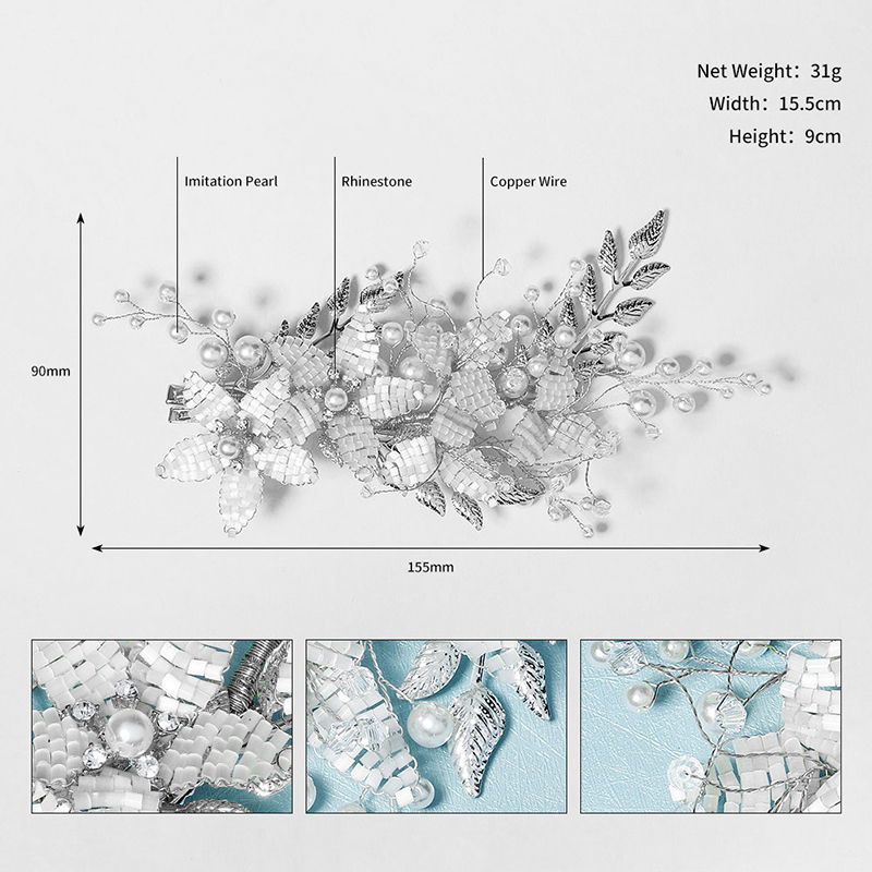 Material: Rhinestone+Imitation Pearl+Copper Wire