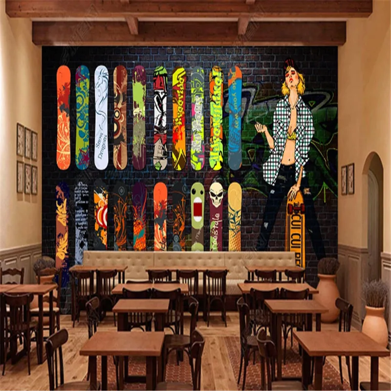 European and American Graffiti Wallpapers Industrial Decor Fitness Sports Skateboard Background Wall Papers Murals 3d