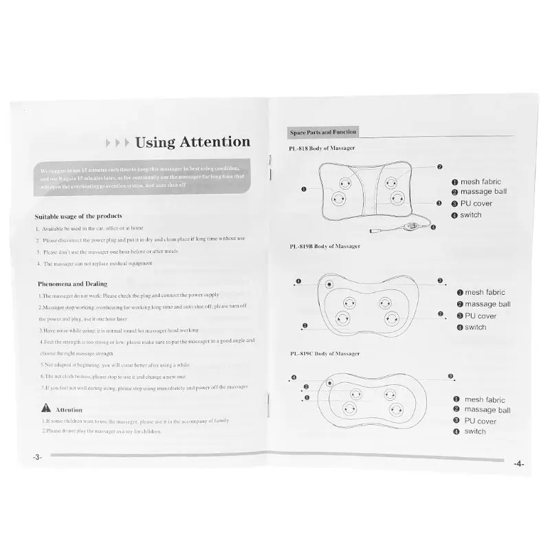 Спроектированные с 8/4 массажными головками, гладкие и эластичные массажные головки могут подарить вам ощущение комфорта и облегчить длительное накопление боли в плечах и шее.