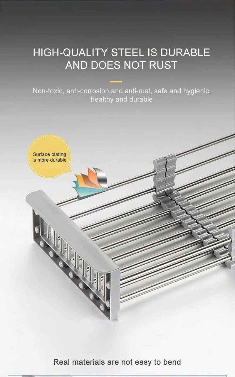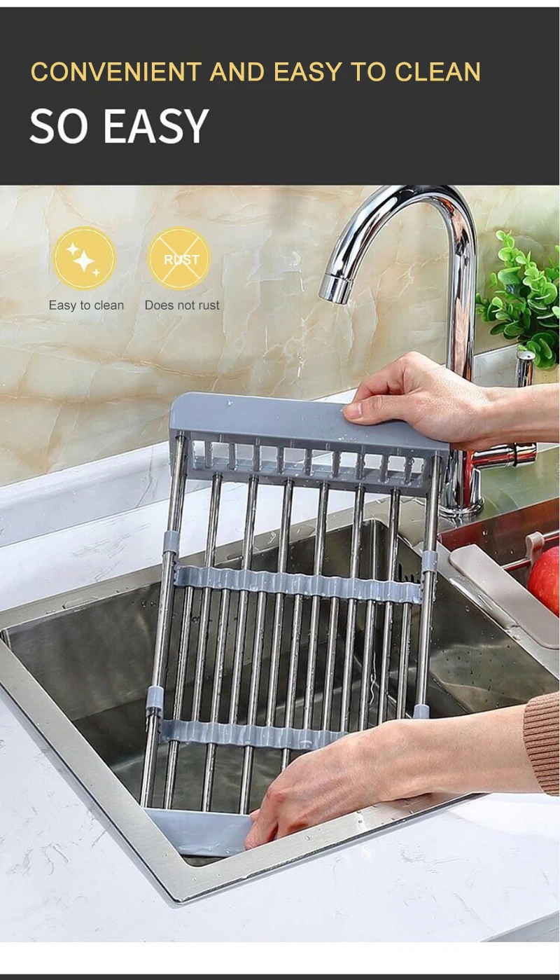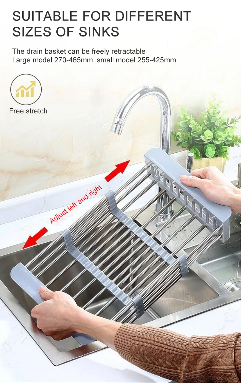 Корзина для слива из нержавеющей стали, полка для дренажа фруктов и овощей, масштабируемая корзина, кухонные аксессуары