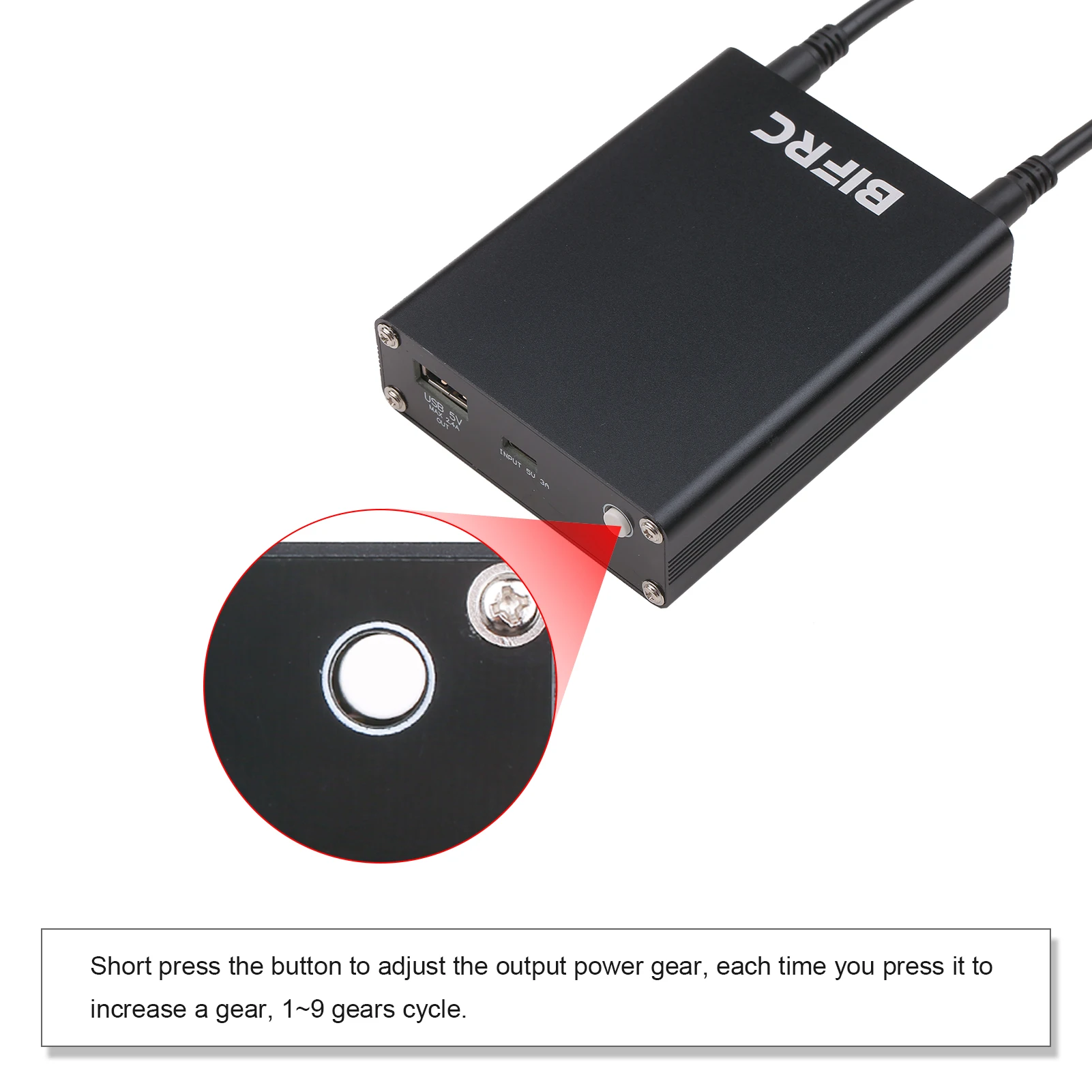 Короткое нажатие кнопки для регулировки передачи выходной мощности, каждый раз, когда вы нажимаете его, чтобы увеличить передачу, 1 ~ 9 циклов передачи.