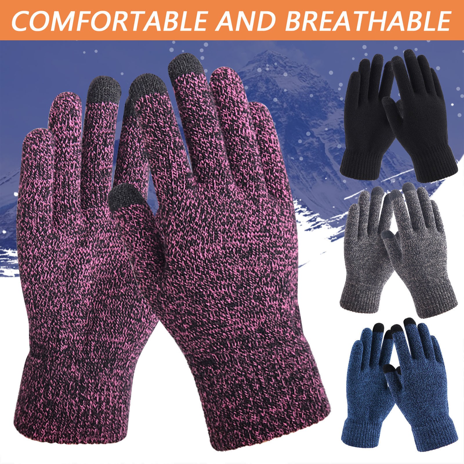Зимние морозостойкие вязаные перчатки теплые плюшевые утолщенные перчатки с полным пальцем