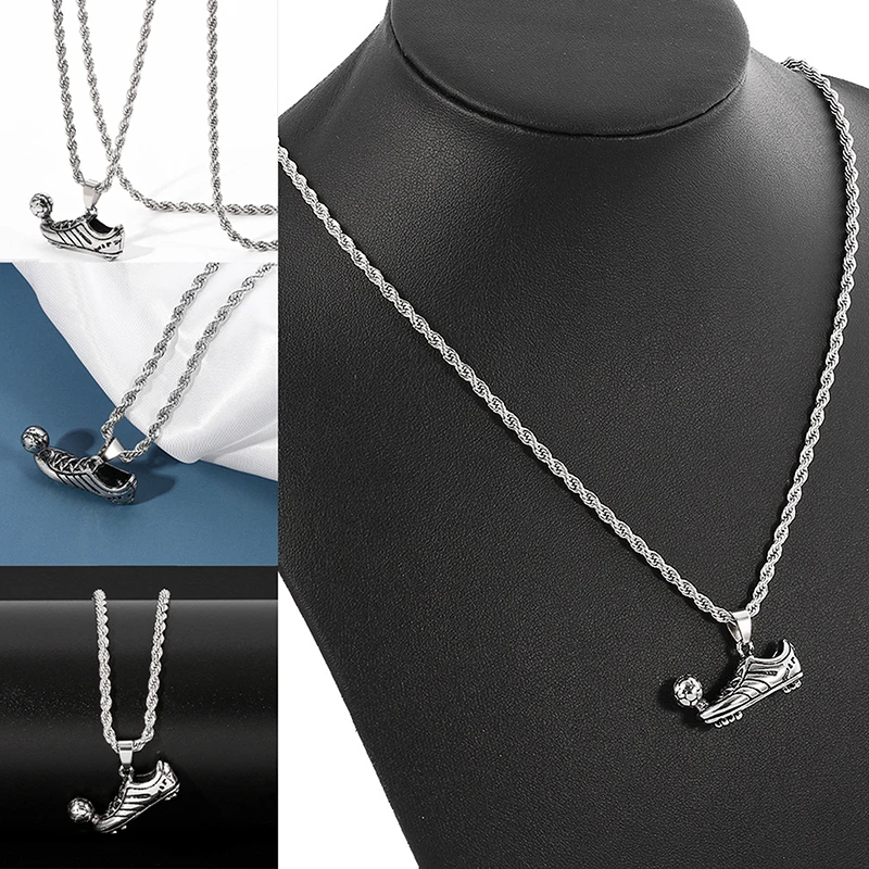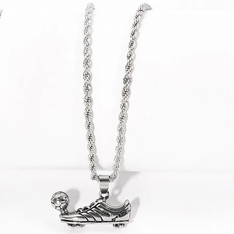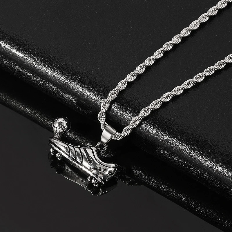 Fashion Hip-hop Football Shoes Pendant Necklace Sports Player Brazil People Charm Collar Necklace Jewelry Street Boy Chic Gift