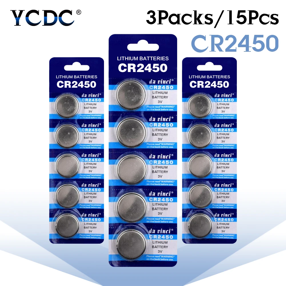 15 шт. CR2450 кнопочный аккумулятор 3 в литиевые батареи CR 2450 LM2450 5029LC для часов дистанционного управления игрушечным компьютером калькулятор
