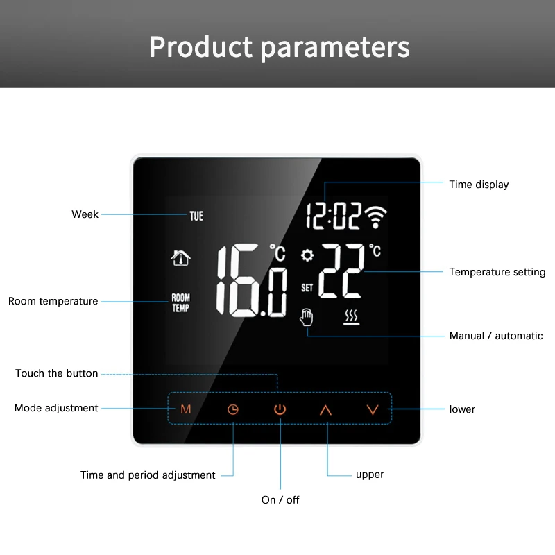 【Еженедельный программируемый 】-термостат поддерживает различные настройки температуры соответственно с 6 режимами времени ежедневно.