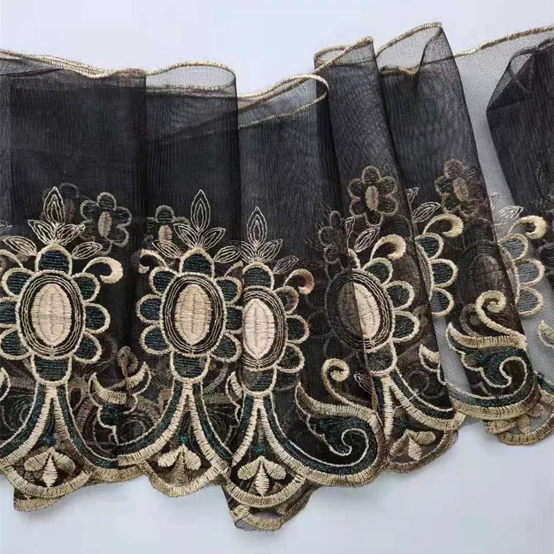 Наименование товара: черная пряжа с золотой вышивкой, расширенная кружевная ткань