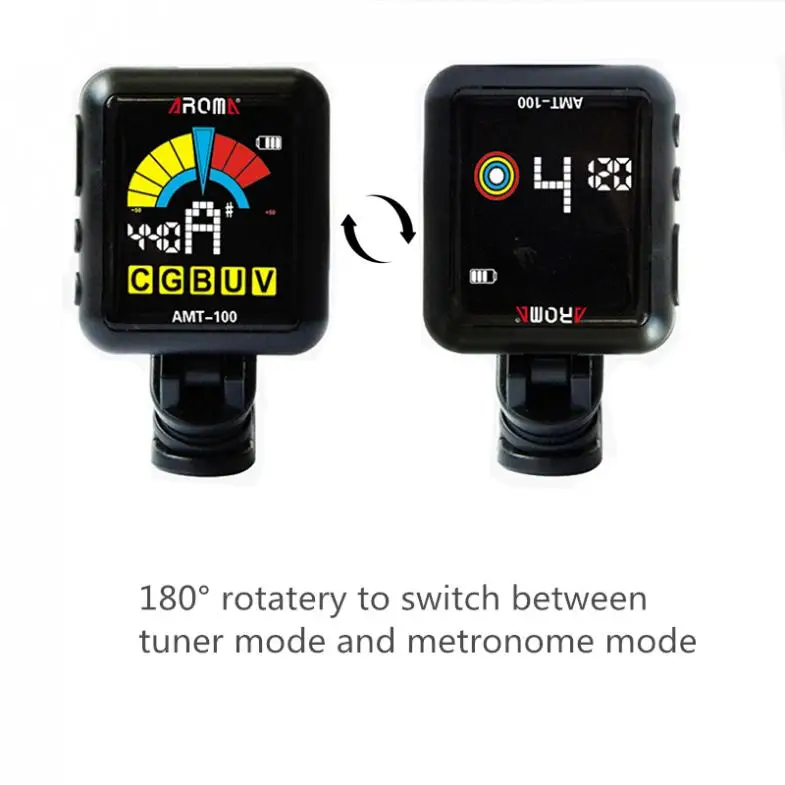 AMT-100 rechНастраиваемый тюнер/Метроном Для хроматической/гитары/бас/укулеле/скрипки, имеет уникальную функцию вращения для автоматического переключения режимов.