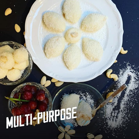 Его можно использовать для изготовления набитых фрикадельки, итальянских фрикадельки, шведских фрикадельки, рыбных шариков, вегетарианских фрикадельки, белковых шариков или жировых бомб. Также подходит для пирожных, макарон, мороженого, фруктов, салатов, барбекю, закусок и т. д.
