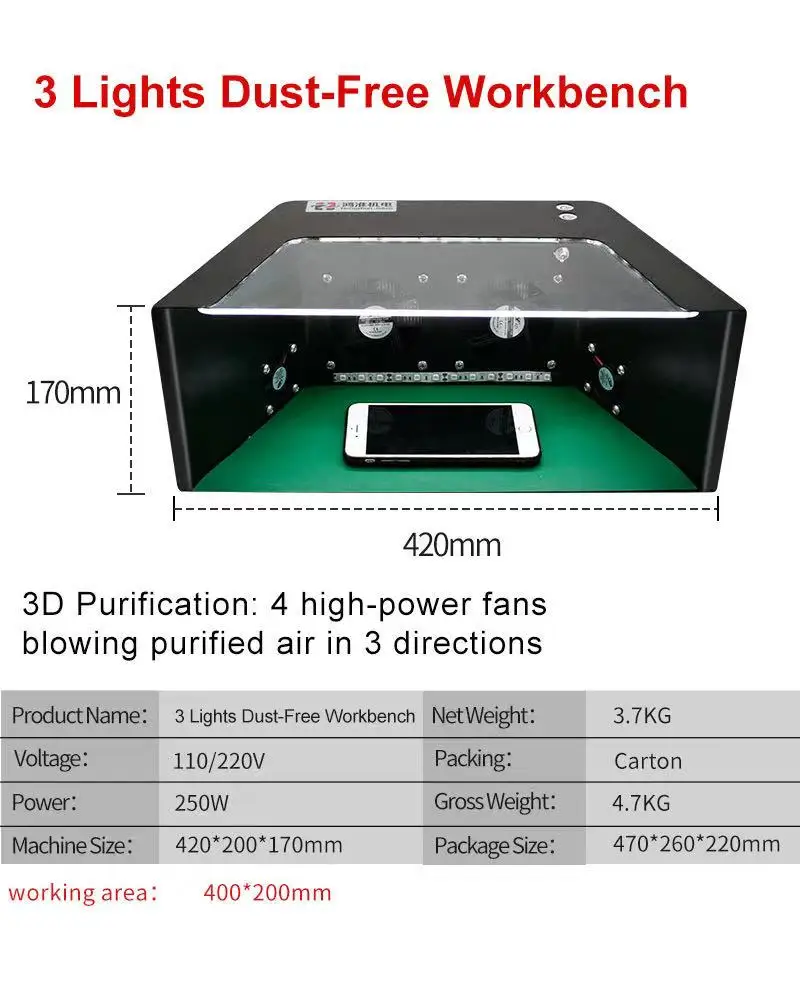 Новая беспылевая очистка воздуха в комнате для ремонт телефонов и ремонт отрицательных ионов двойная лампа пылезащитный верстак