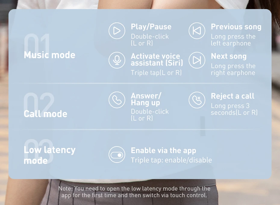 Сенсорный для управленияВы можете определить функции нажатия жестов в приложении, чтобы соответствовать вашим привычкам и создавать свои личные наушники.
