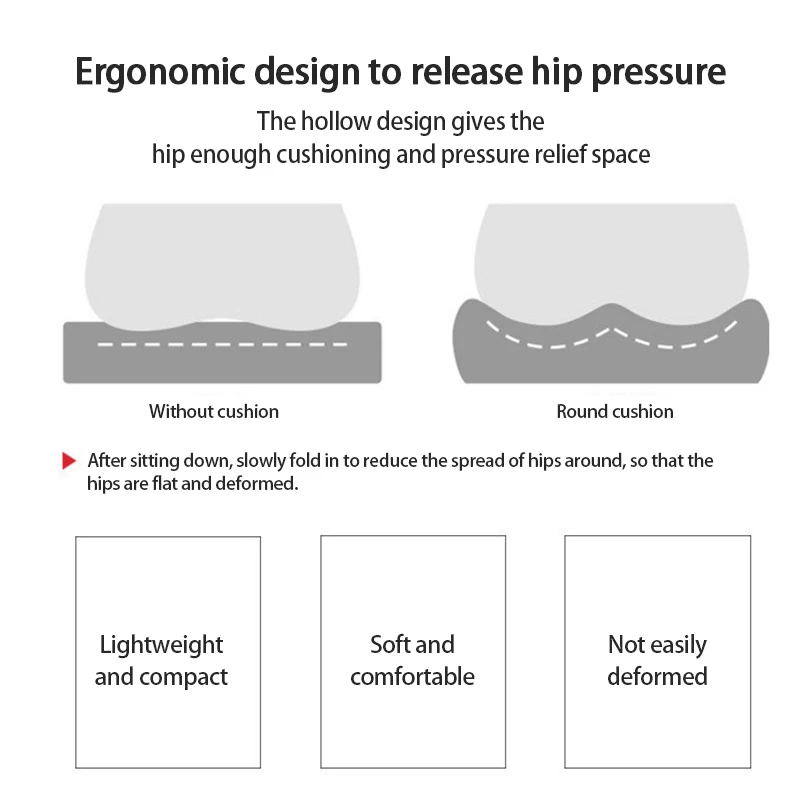 Легко носить с собой: Портативный подушка "пончик", его можно взять с собой на любой стул-инвалидную коляску, офисный стул, самолет, автомобиль и т. д.