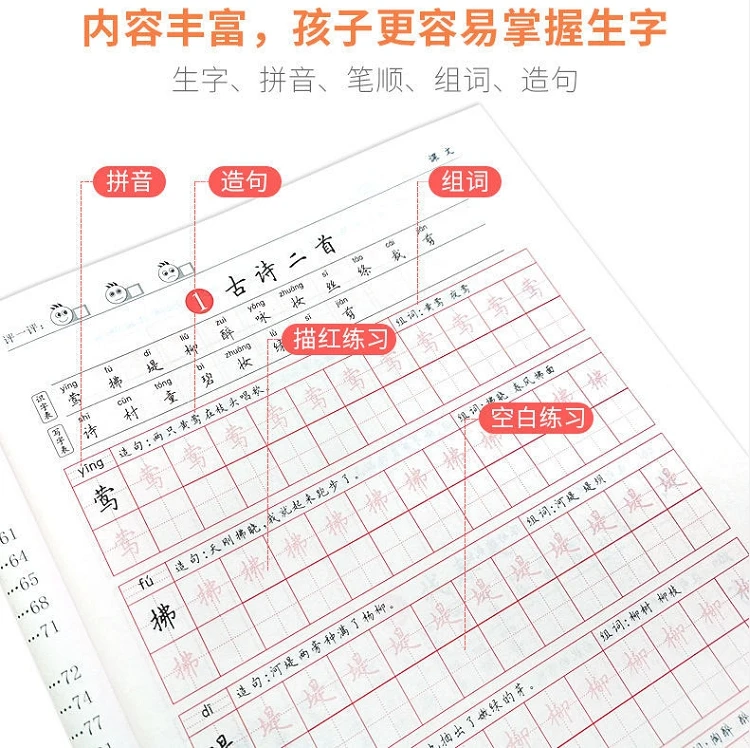 Новинка, хит продаж, китайский текстовый пост для начальной школы, 1-6 класс, каллиграфическая почта, жесткая ручка, копия, Miaohong, Студенческая каллиграфия, квадрно-арт