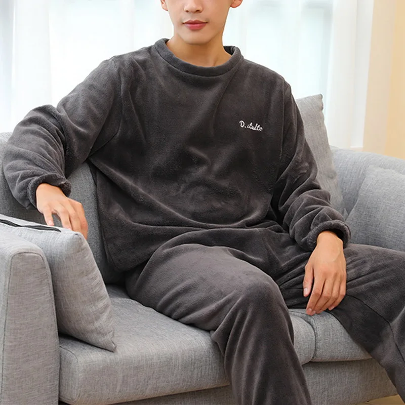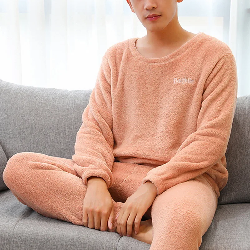 Features:Warm Pants Suit Coral Fleece Pajamas Autumn And Winter Home Service Warm Clothes Plus Velvet Thickening Outer Wear Couple