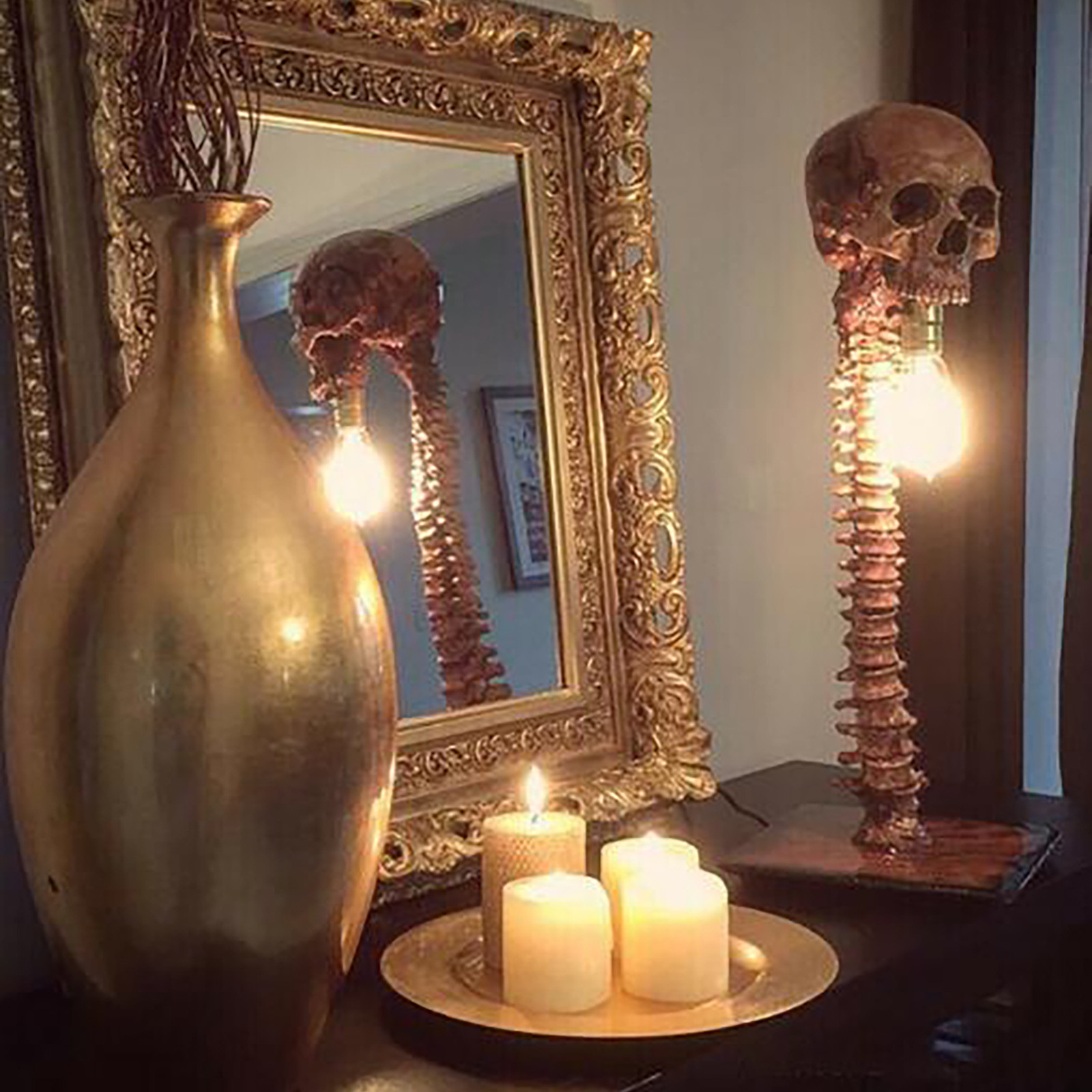💀Используйте эту темную альтернативную лампу, чтобы осветить вашу комнату. Изогнутая вверх от черного основания, стебель этой лампа со скелетом-это позвоночник, а позвонки свернуты к верхней части лампы.