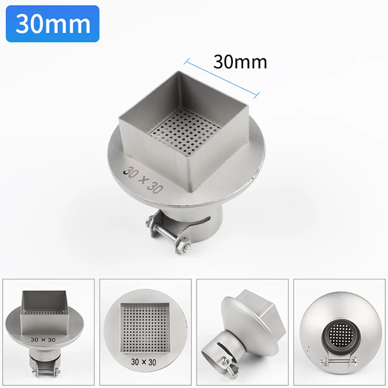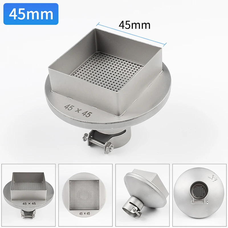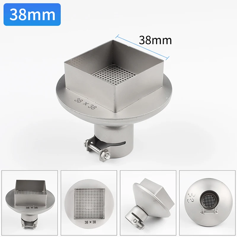 Размер выхода воздуха: длина * Ширина 15 мм * 15 мм 18 мм * 18 мм 20 мм * 20 мм 25 мм * 25 мм 28 мм * 28 мм 30 мм * 30 мм 35 мм * 35 мм 38 мм * 38 мм 41 мм * 41 мм 45 мм * 45 мм, используется для пистолета горячего воздуха серии 850 8205, 8305, 852D, если вы не уверены, какой интерфейс вы используете! Пожалуйста, свяжитесь со службой поддержки клиентов, чтобы четко спросить!