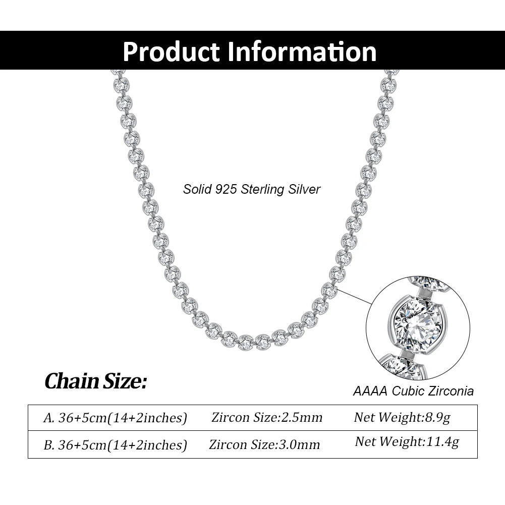 ORSA JEWELS Настоящее серебро 925 пробы теннисное ожерелье 2,5 мм круглая огранка из кубического циркония Ожерелье для теннисного чокера SC51