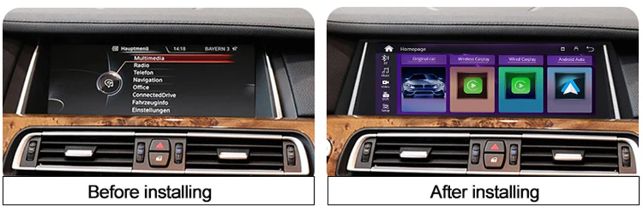 Это мультимедийный сенсорный экран со встроенным Apple CarPlayandAndroid auto. Он заменит ваш OEM-экран и добавит Вашему автомобилю следующие функции. Подключи и работай, без кодирования. Совместим со всеми оригинальными функциями OEM. В комплекте кнопки рулевого колеса, ручки iDrive, датчики парковки, камеры и многое другое. Переключение на CarPlay или оригинальную системуБеспроводной или проводной AppleCarPlay Проводной Android auto Воспроизведение видео или музыки с USB Голосовое управление Siri, ручки, кнопки или сенсорный экран Совместимые оригинальные Датчики парковки. Совместимые оригинальные камеры и вторичные камеры (передняя, задняя и 360-градусная камеры. Автоматическое переключение при движении задним ходом) Обратите внимание: Это устройство не является системой Android. Его необходимо подключить к телефону для использования CarPlay и Android auto. Без подключения мобильный телефон вы можете использовать только функции простого воспроизведения музыки и видео OEM systemor. Это устройство выводит звук через AUX, перед заказом убедитесь, что в вашем автомобиле есть функция AUX.