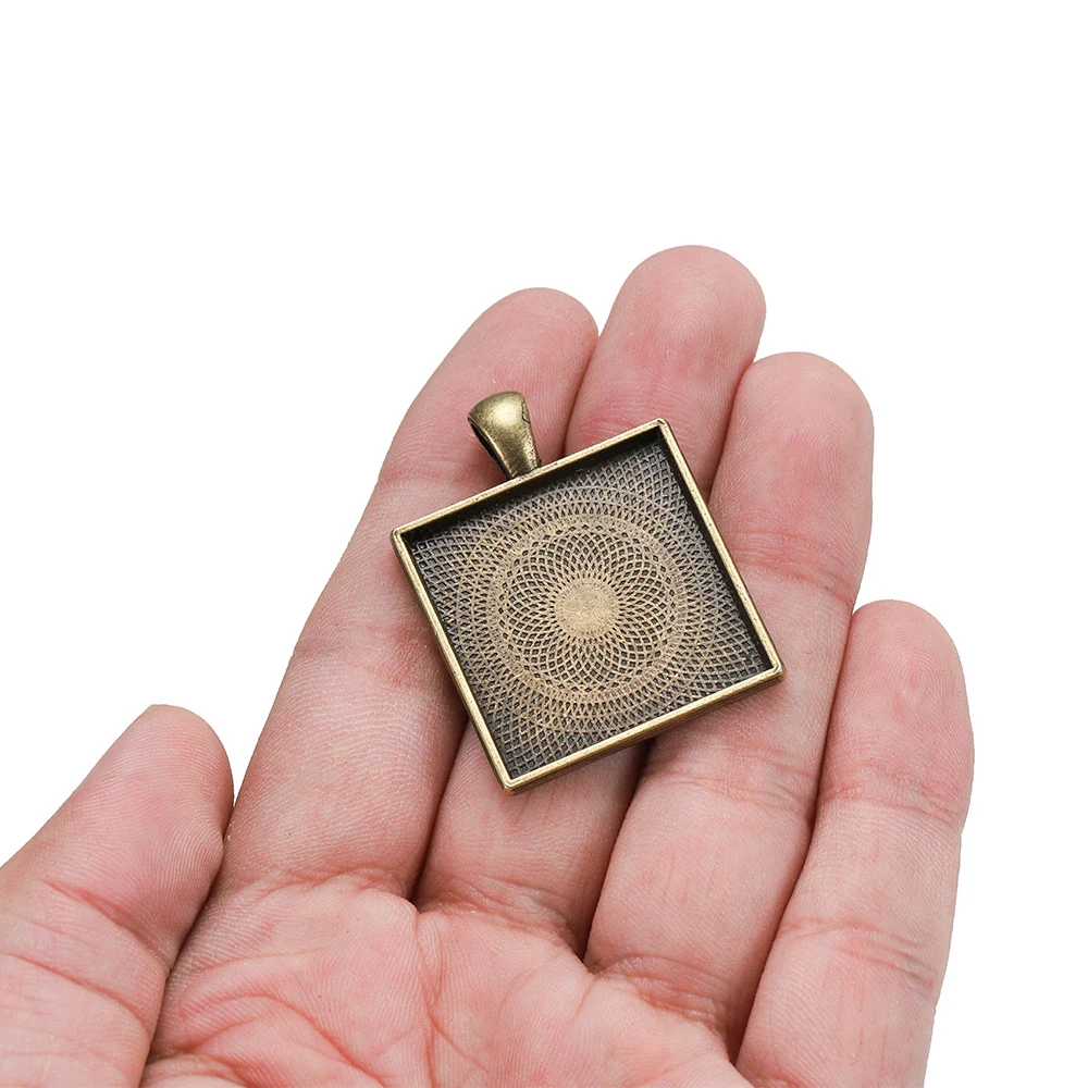 5 шт./лот, 25 мм, квадратные Кабошоны, основа, настройки, цинковый сплав, подвески, подвески, ободок, подносы, кабошон, сделай сам, ожерелье, ювелирное изделие