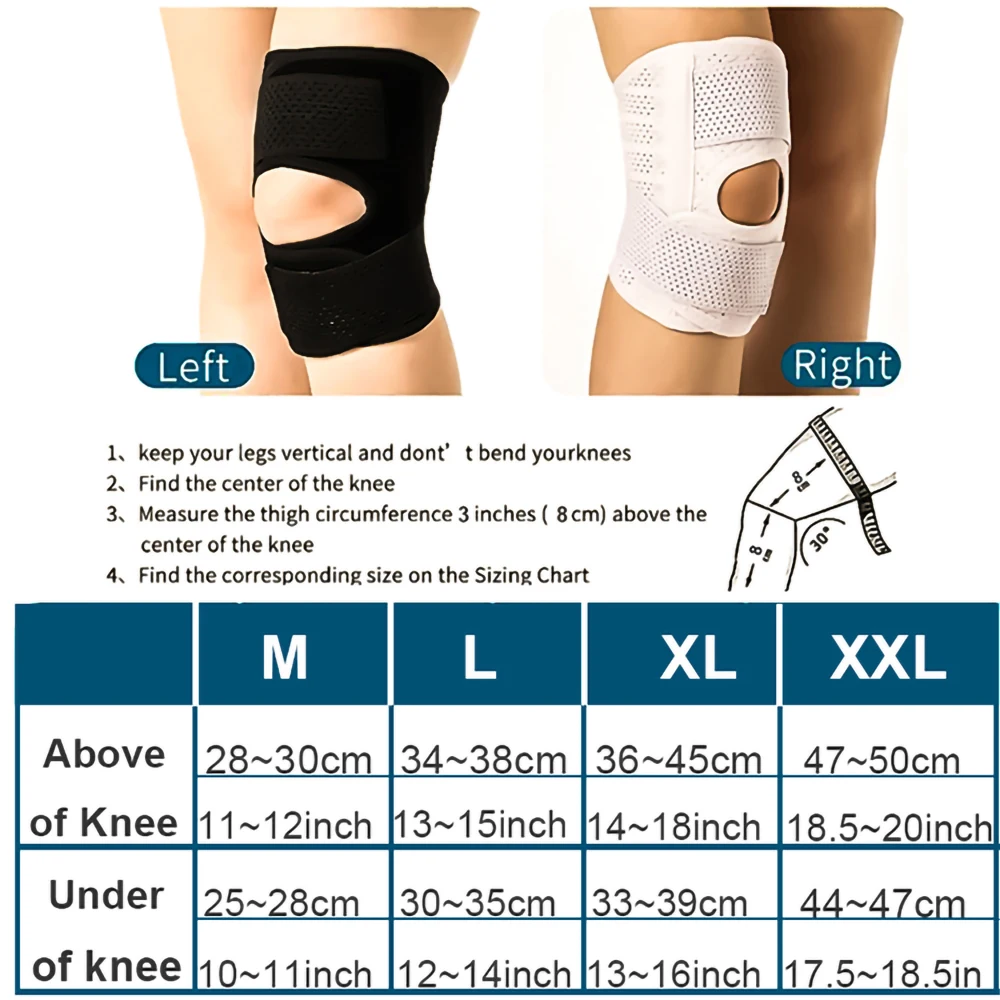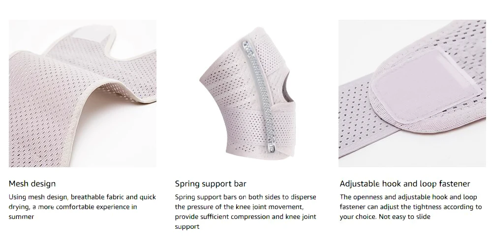 Две мягкие и эластичные поддерживающие полоски помещаются с обеих сторон коленного бандажа, чтобы рассеивать давление на коленный сустав во время упражнений. Эффективно снимает острые и хронические боли в коленных суставах, такие как MCL, артрит, деформации, растяжения, слезы мениска и т. д. и идеально подходят для послеоперационного восстановления