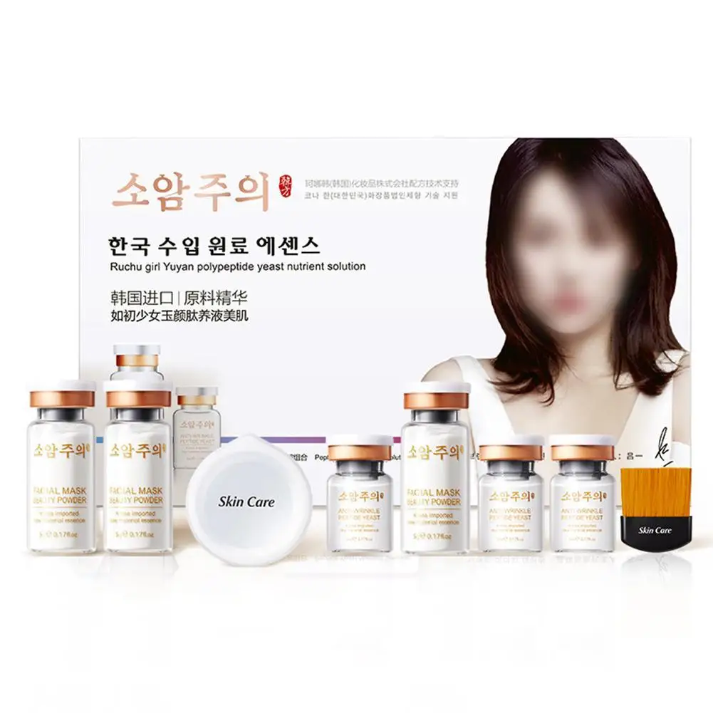 Полипептидные дрожжи против морщин пептидный питательный раствор 5mlX3 бутылка + маска для лица против морщин косметическая пудра 5gX3 бутылка + 1 бесплатная чашка для кондиционирования + 1 индивидуальная кисть для кондиционирования