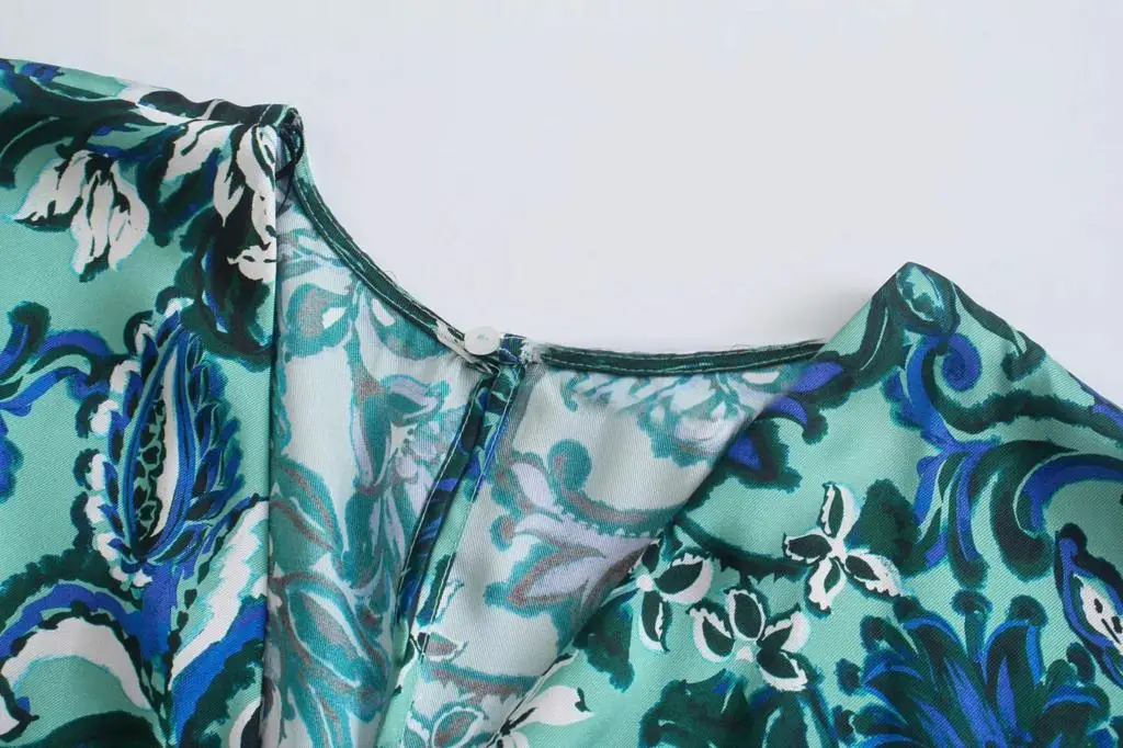 Комбинезон с v-образным вырезом и длинными рукавами, опускающимися ниже локтя. С боковыми карманами, деталью Дротика на талии и галстуком. Застегивается сзади на пуговицы и молнии.