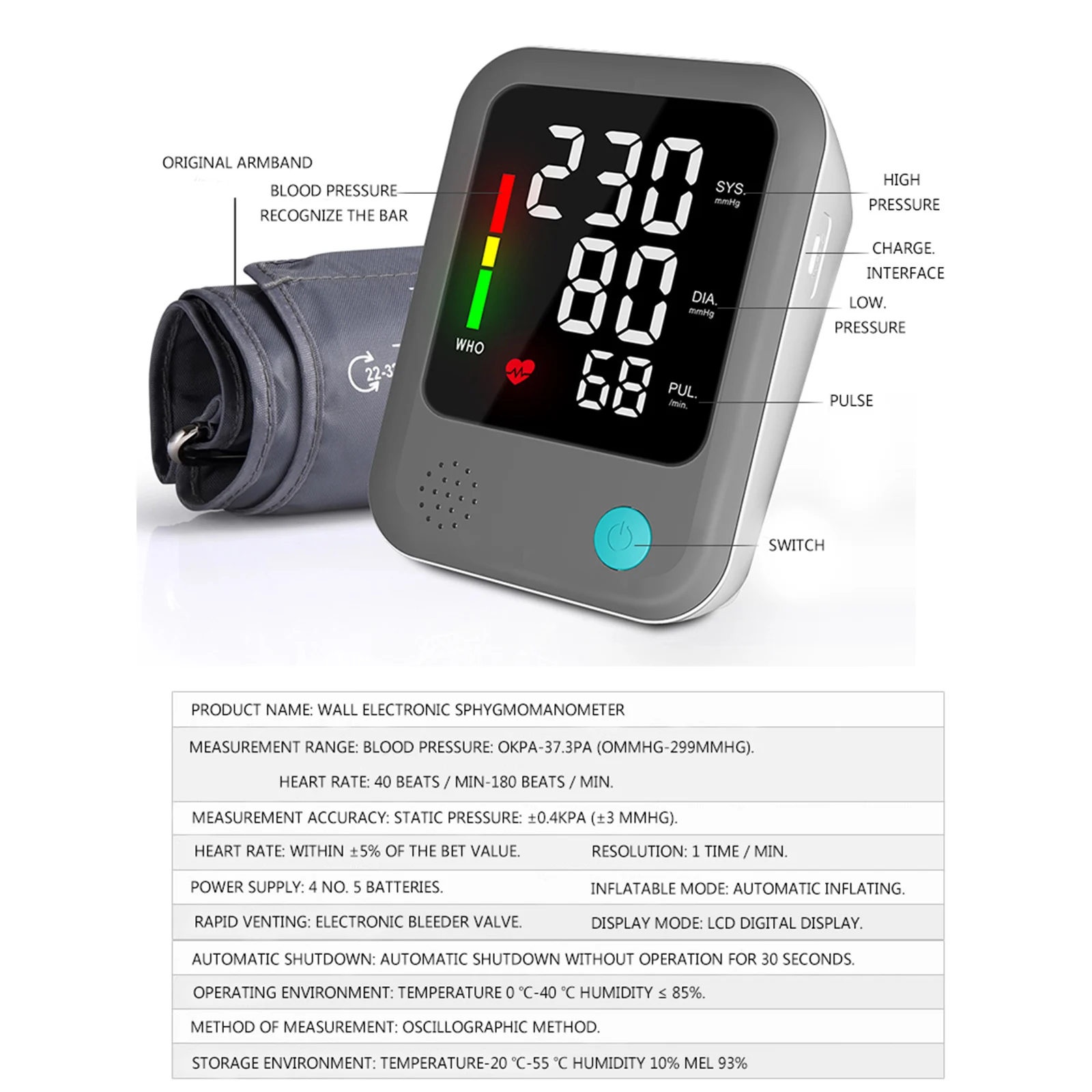 Простота в эксплуатации: один ключ для измерения артериального давления, автоматически завершить весь процесс измерения.
