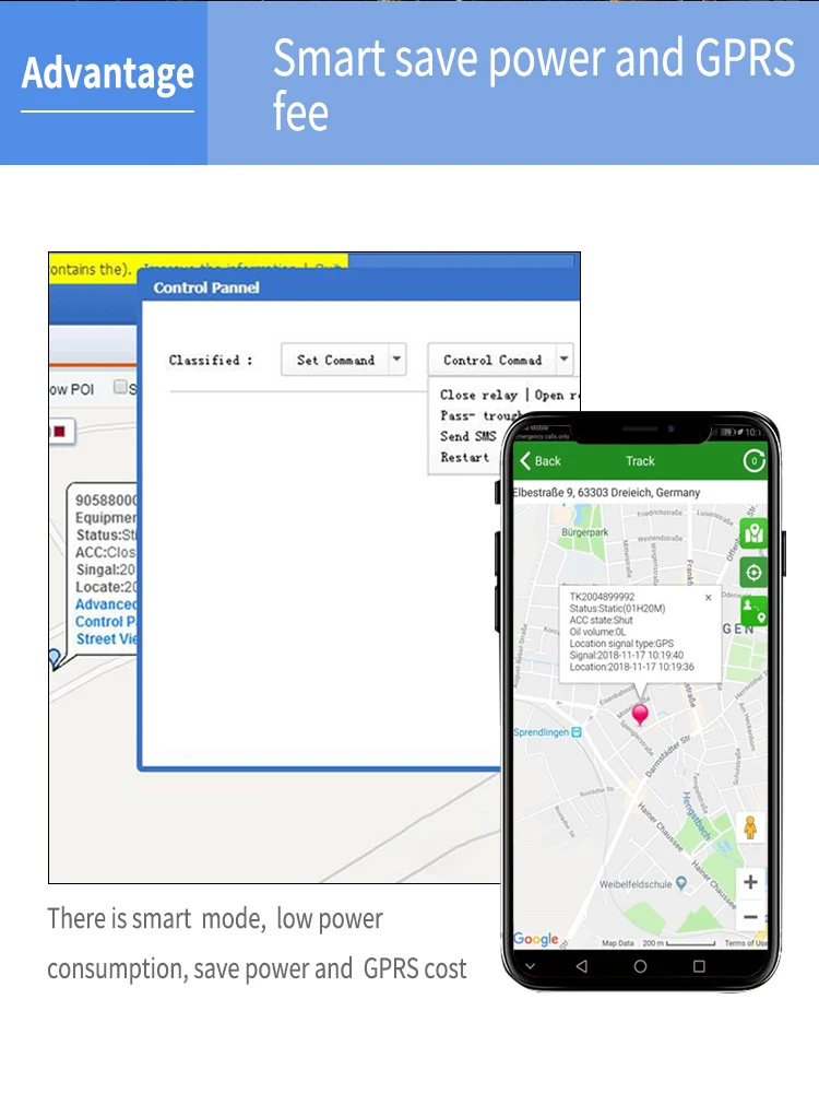 Работает на основе существующей сети GSM/GPRS и gps-спутников, этот продукт может находить и контролировать любые удаленные цели с помощью SMS, приложения и Интернета. Он использует самые передовые технологии GPS и двойного позиционирования GPS.