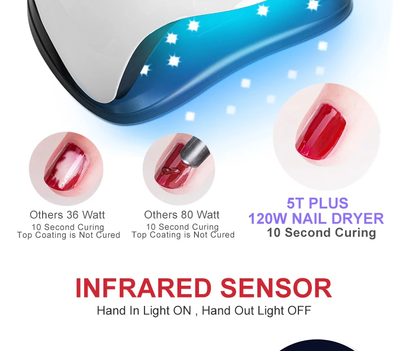 72 Вт Высокая мощность Сушилка для ногтей быстрая отверждения гель-светильник лампа для ногтей Светодиодный УФ-лампы для всех видов геля с таймером и умным датчиком