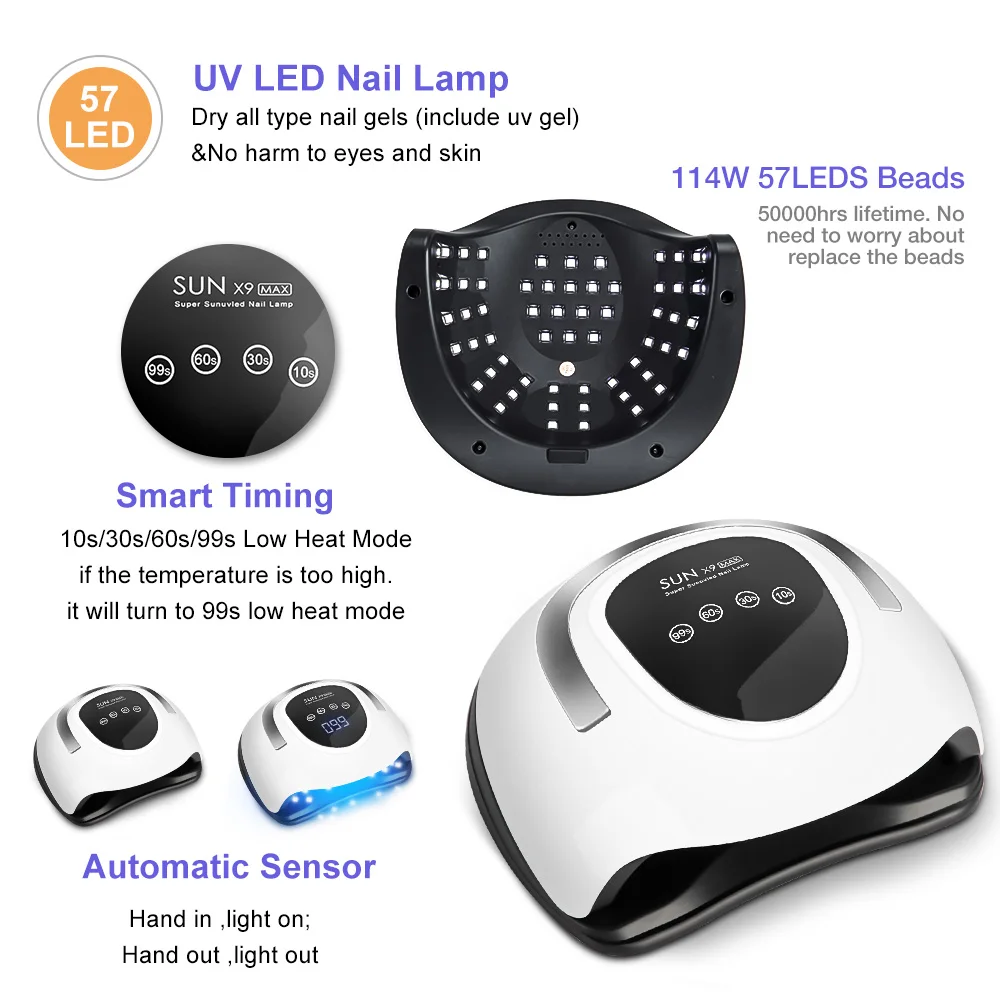 90/114W Светодиодная УФ-лампа для ногтей для маникюра ногтей сушильная машина 45/57 Светодиодный УФ лед лампа для сушки Гель-лак с автоматическим Сенсор
