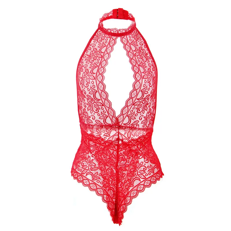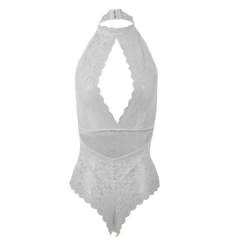 Comeonlover Bodysuits Women Clothes Solid Plus Size Fashion Halter Linght Thin Lace Breathable Open Cup Back Hollow Lady Teddy