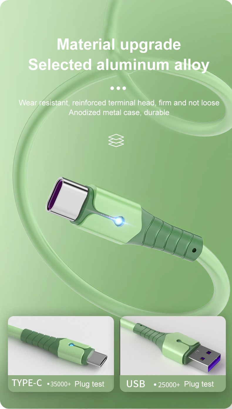 Микро-usbЖидкий силиконовый кабель для передачи данных с светильник 3A кабель для быстрой зарядки 2 м