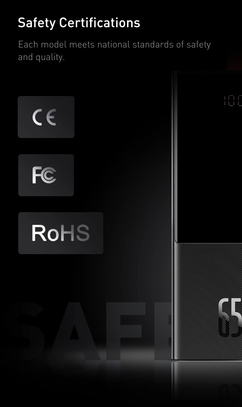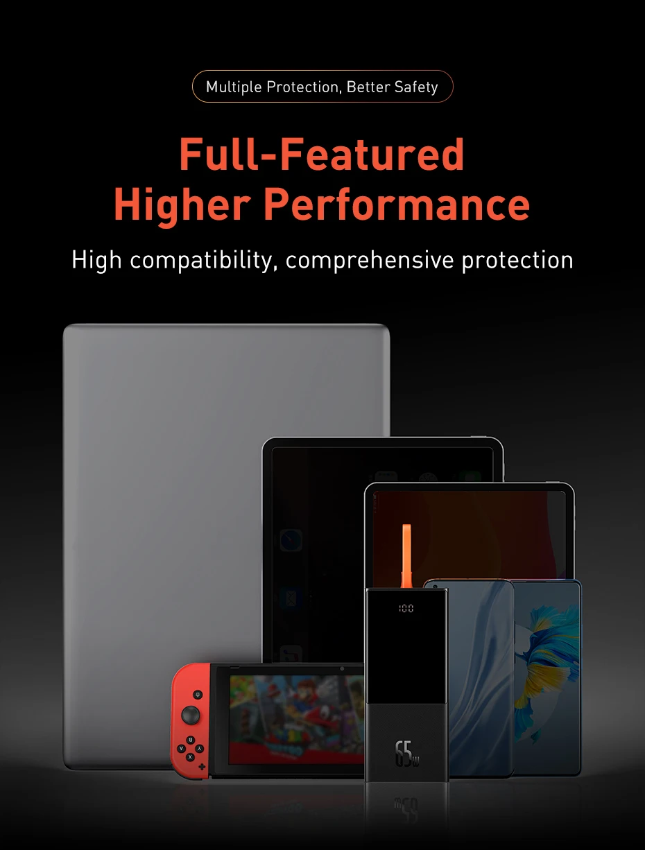 20000 мА · ч Высокая емкость, меньше частоты, больше свободы, 65 Вт вход позволяет полностью заряжать мгновенно, одновременно заряжать три устройства,