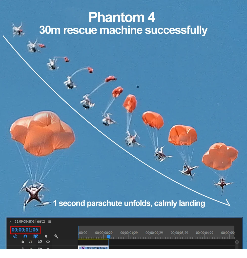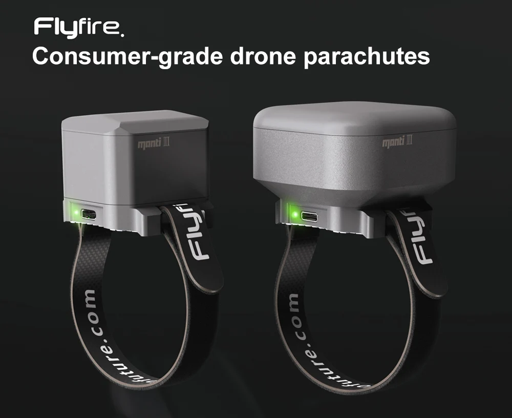 Manti 3 многоразовый парашют-это специальный дизайн Flyfire для DJI Mavic Air 2 / Air 2S / Mavic 2 Pro с интеллектуальными алгоритмами, система слияния данных обеспечивает контроль высоты и отношения. Применение прочный материал эффективно замедлить падение скорости до 5,5 м/с. Аккумулятор большой емкости обеспечивает длительное время работы в режиме ожидания и время использования.