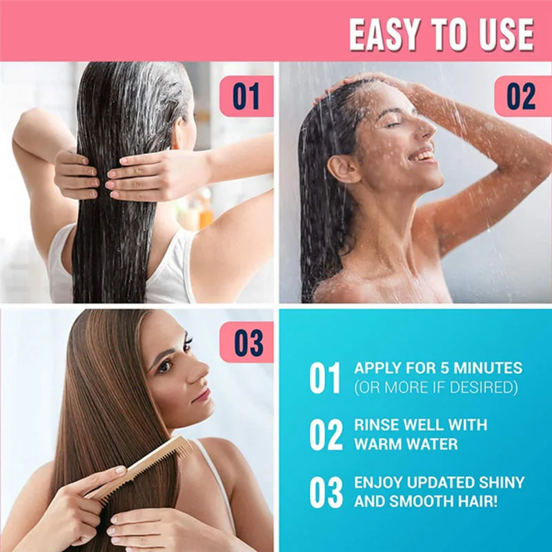 Применение: нанесите на волосы после мытья шампунем, чтобы обеспечить полное покрытие от корней до кончиков. Оставьте волосы от 5 до 10 минут. Мы настоятельно рекомендуем расслабляться в ожидании лечения. Получите немного времени, Наслаждайтесь приятным ароматом нашей маски и Позвольте вашим волосам насладиться процессом обновления. Затем снимите краску с теплой водой.