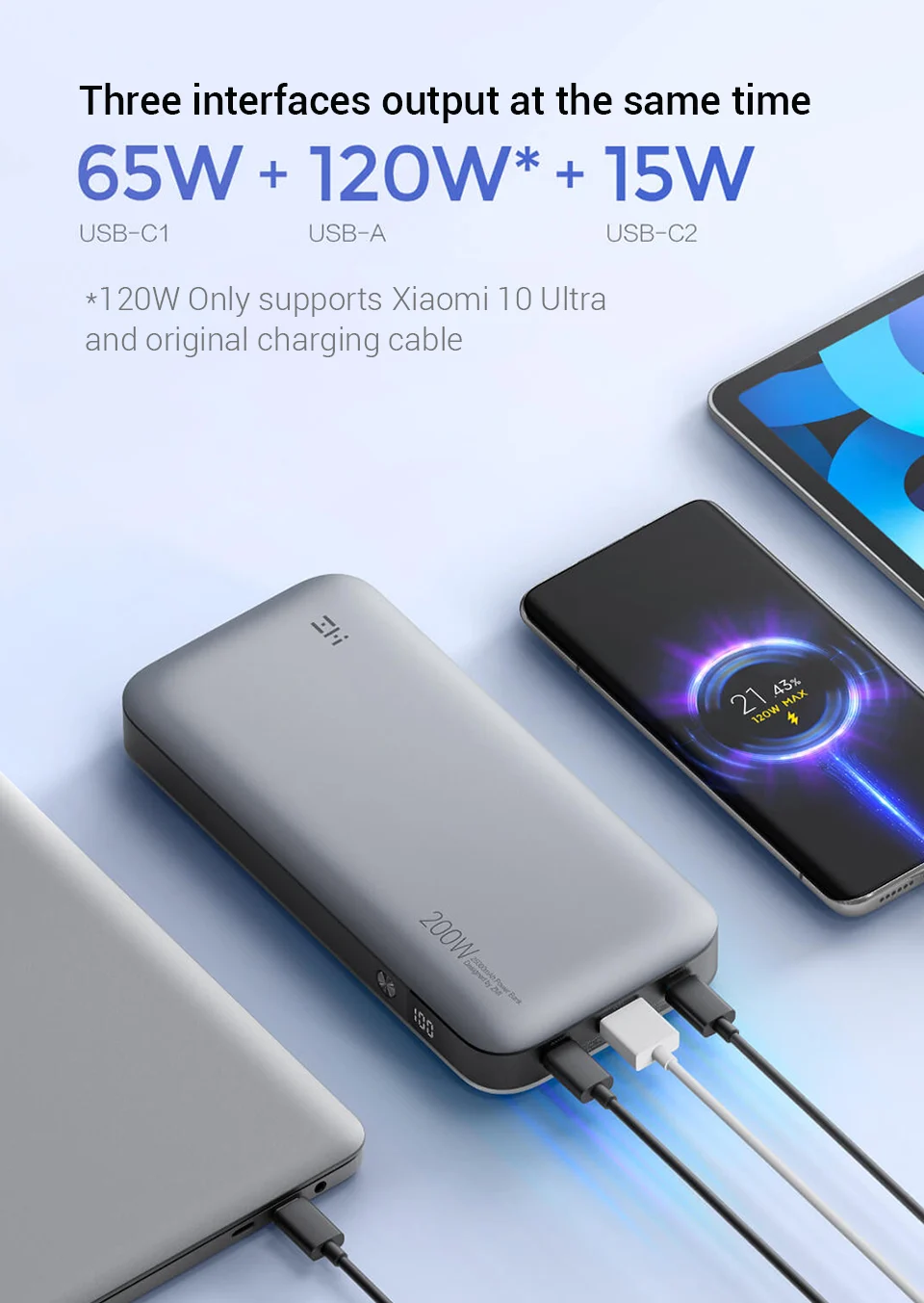 Этот продукт не соответствует стандарту с зарядным кабелем Mi 10 Extreme Edition. Если пользователи должны зарядить Mi 10 Extreme Edition 120W, им нужно приобрести оригинальный зарядный кабель или оригинальный зарядный кабель, который соответствует стандарту на мобильный телефон.