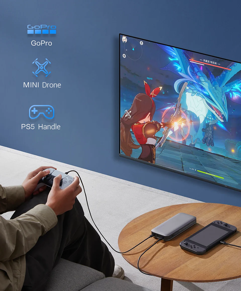 Стандартная конфигурация USB-C, чтобы зарядить SB-C EMARK5A зарядный кабель и подключать SB-A к зарядному SB-C кабель для зарядки.