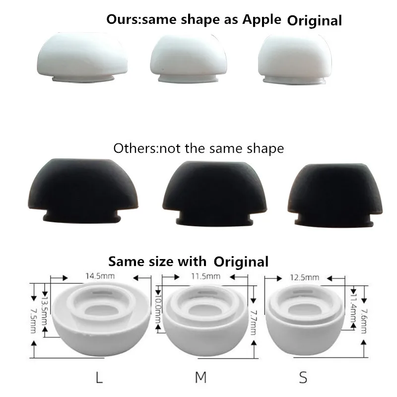 1:1, как оригинальные сменные амбушюры Apple, подходят для AirPods Pro.