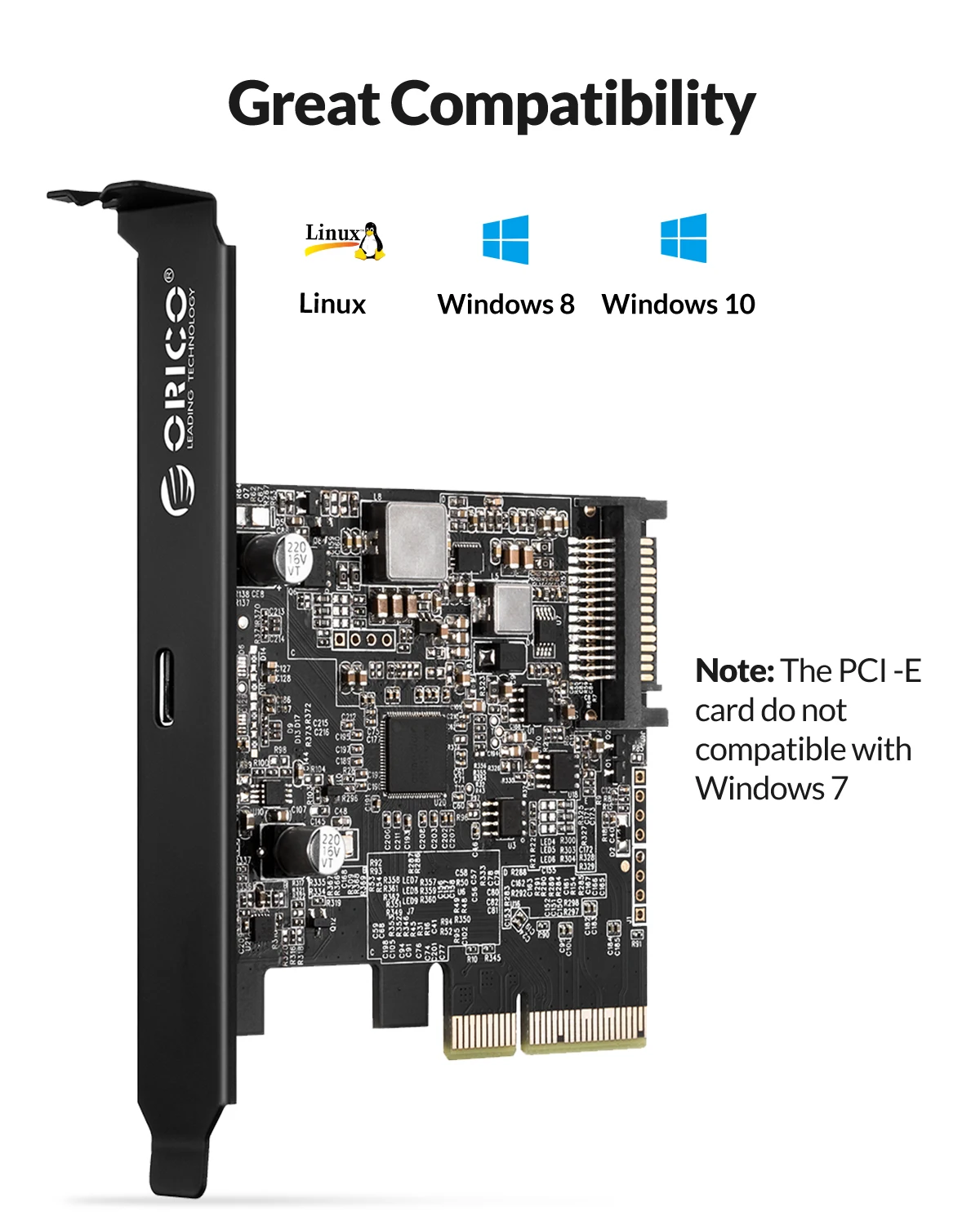 ORICO USB Pcie Card,Type C PCI-Express 4X to USB 3.2 Gen 2x2 (20 Gbps), ASM3242 Chipset for Windows 8/10/Linux,Compatible Slot: PCIe x4 (3.0), PCIe x8, PCIe x16