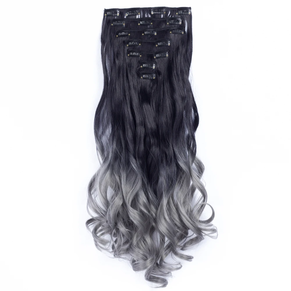 Клип в наращивание натуральных волос для наращивания 7 компл./упак. волнистые волосы прямые эффектом деграде (переход от темного к Цветной синтетический клип в шиньоны 22 дюймов 130g Reshowbeauty