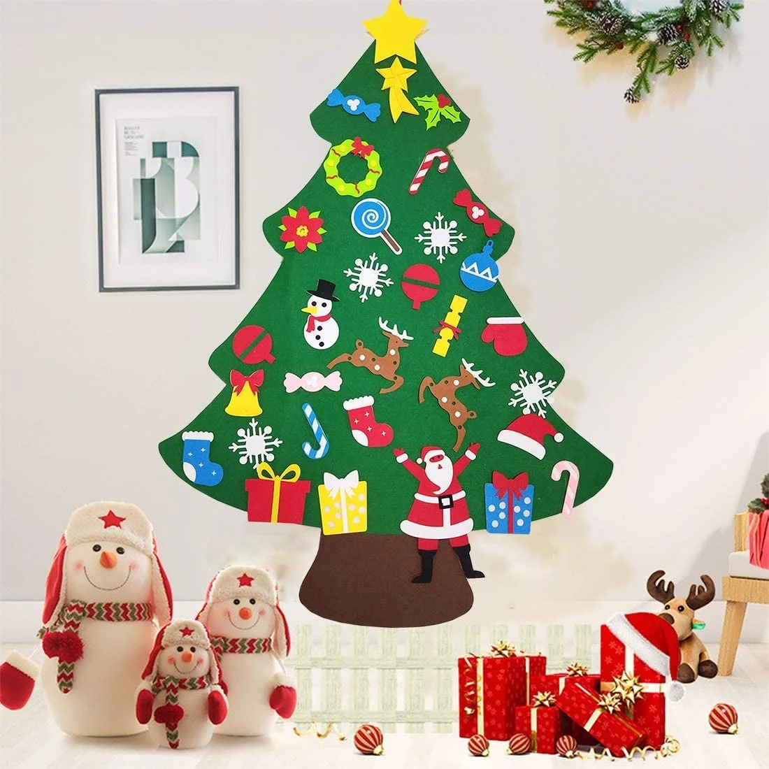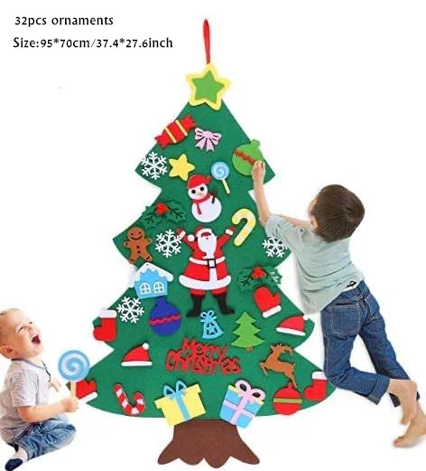 🎄Войлочная елка «сделай сам»: войлочная Рождественская елка и войлочные украшения разделены. Дети могут приклеивать украшения случайным образом, чтобы соответствовать их предпочтениям. Этот процесс улучшает отношения родителей и детей; Улучшает способность ребенка к координации рук и глаз и манипулятивным способностям. Он также может использоваться для обучения детей ясельного возраста, цветопередаче, воображению и рождественским традициям